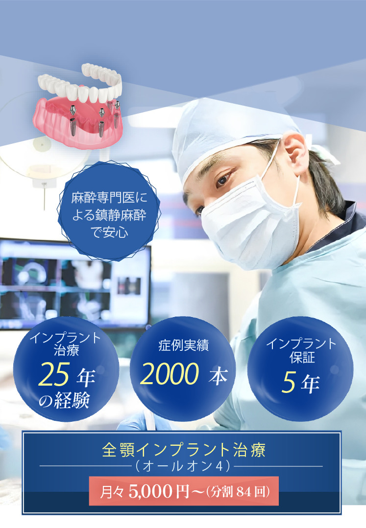 aインプラント(1本):42万円〜、オールオン4(片顎):280万円〜